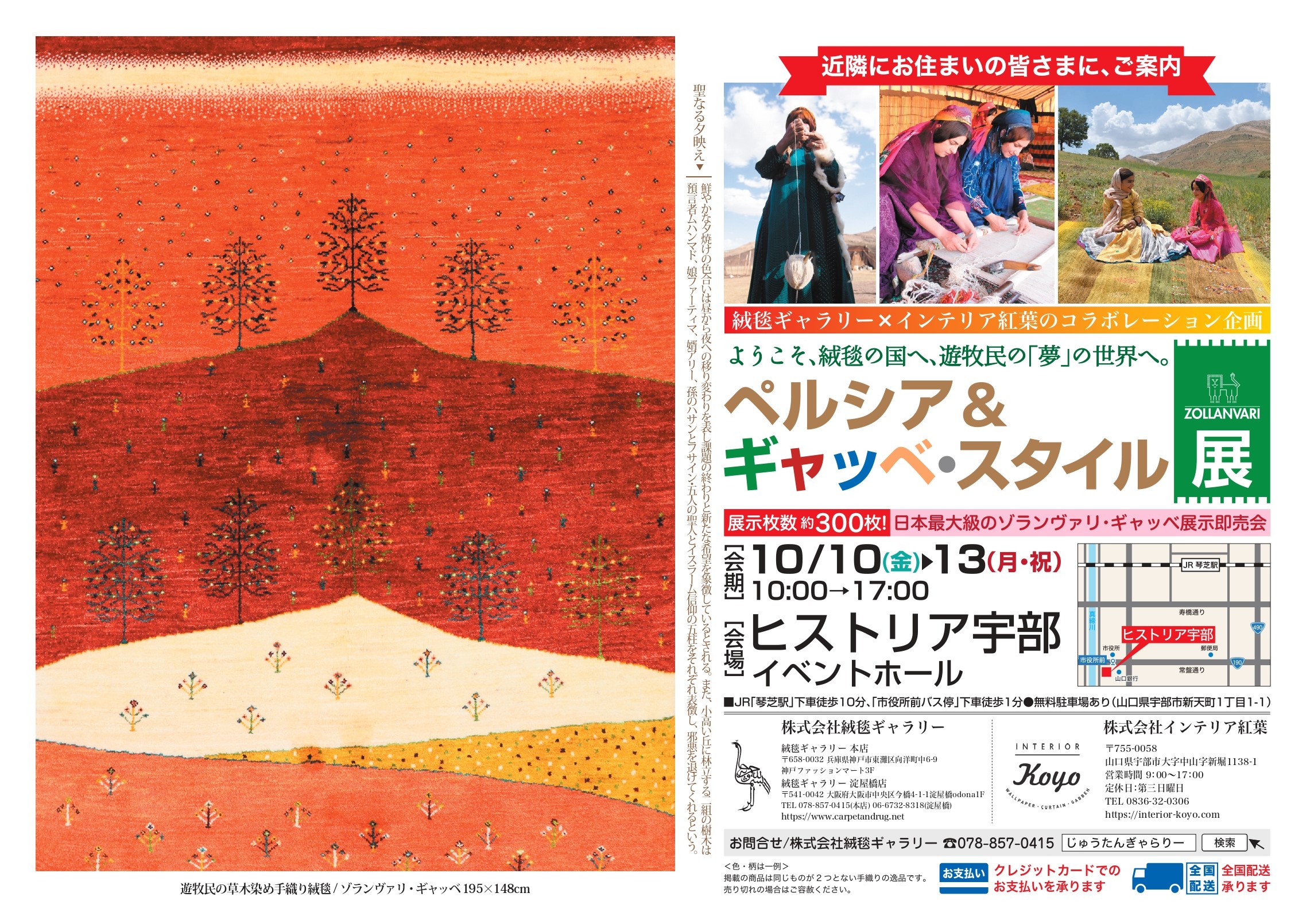 是非、今日明日は、ペルシャ&ギャッベスタイル展にご来場ください