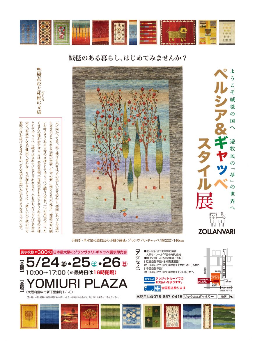 ペルシア&ギャッベ・スタイル展を5月24日(金)~5月26日(日)の3日間、千里中央にあるSENRITO PLAZAにて開催します。